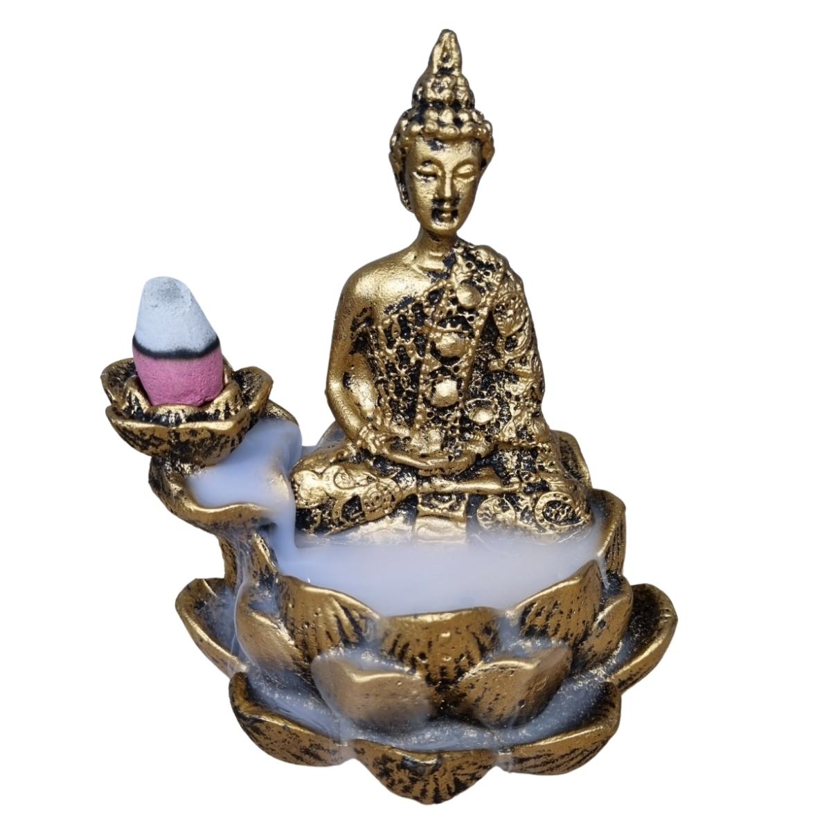 Desperte a tranquilidade em seu ambiente com nosso incensário cascata em resina, onde o Buda repousa dentro de uma flor de lótus. Deixe a fumaça fluir suavemente, envolvendo-o em uma atmosfera de calma e serenidade.