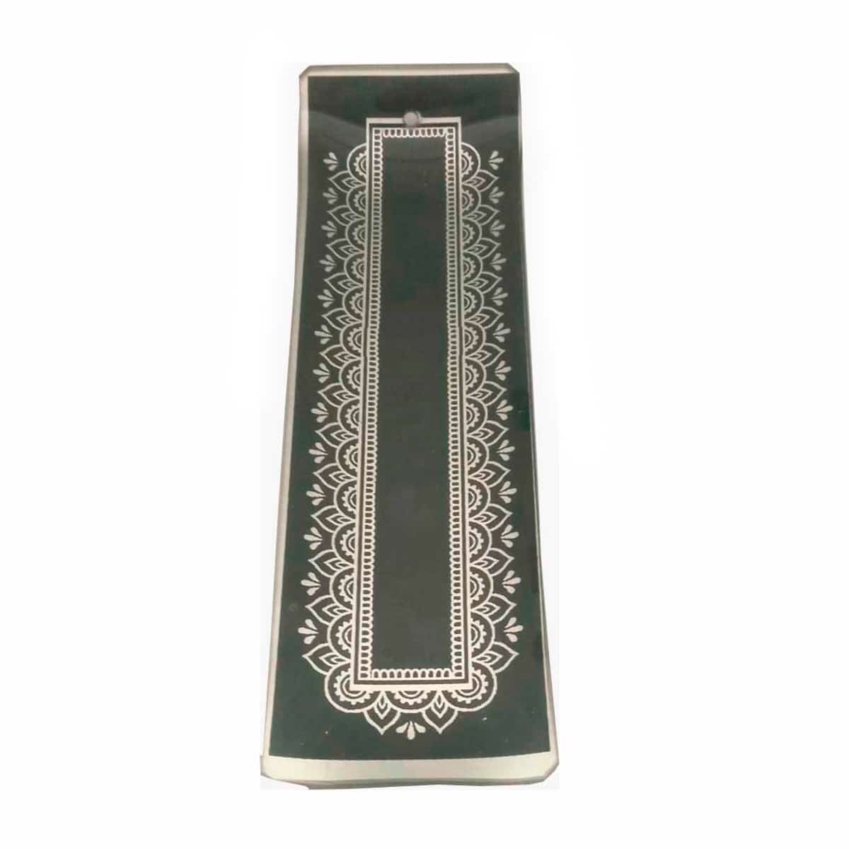 INCENSÁRIO DE VIDRO CANALETA MANDALA PRATA E CINZA