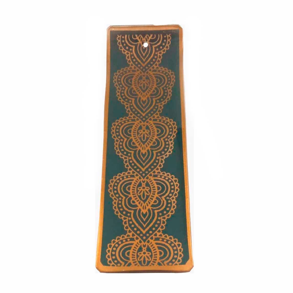 INCENSÁRIO DE VIDRO CANALETA MANDALA PRATA E DOURADO