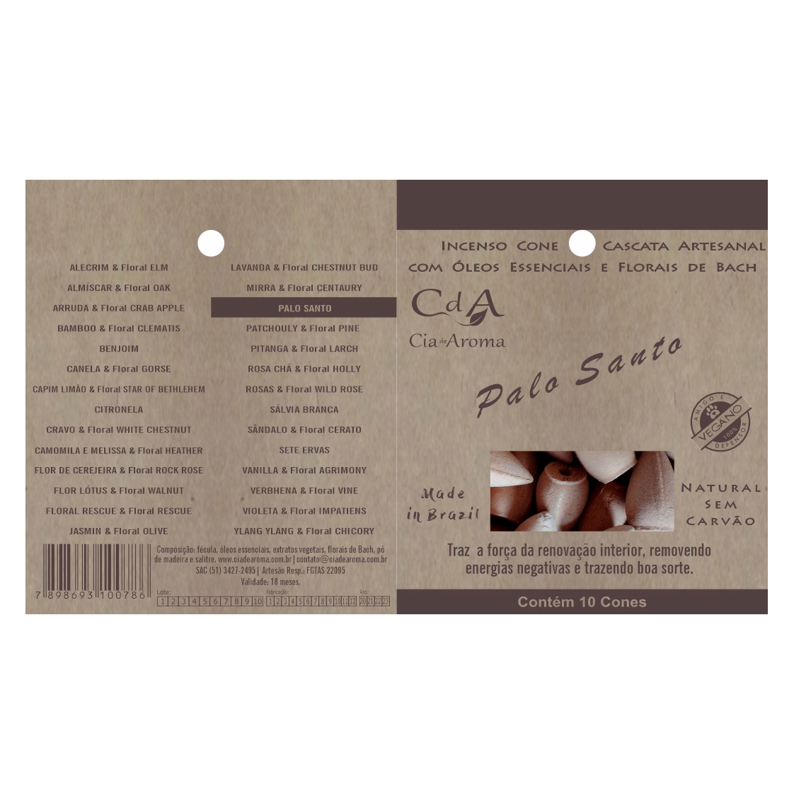 O incenso em cone refluxo Palo Santo contém óleo essencial de PALO SANTO, que significa “Madeira Sagrada” em castelhano. Graças às muitas propriedades curativas e espirituais que carrega.