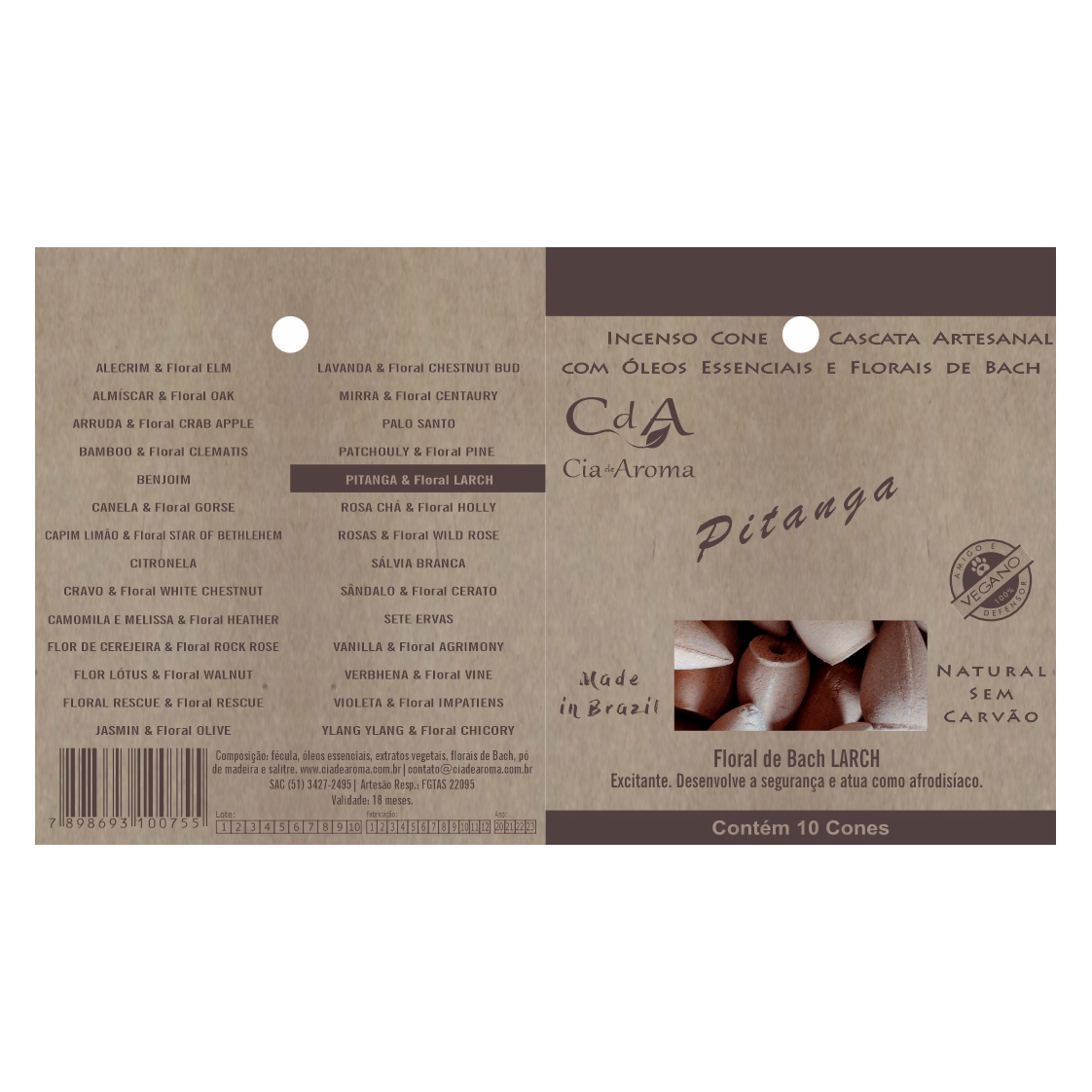 O incenso em cone refluxo Pitanga contém óleo essencial de PITANGA e floral de LARCH. É excitante, desenvolve a segurança e atua como afrodisíaco.