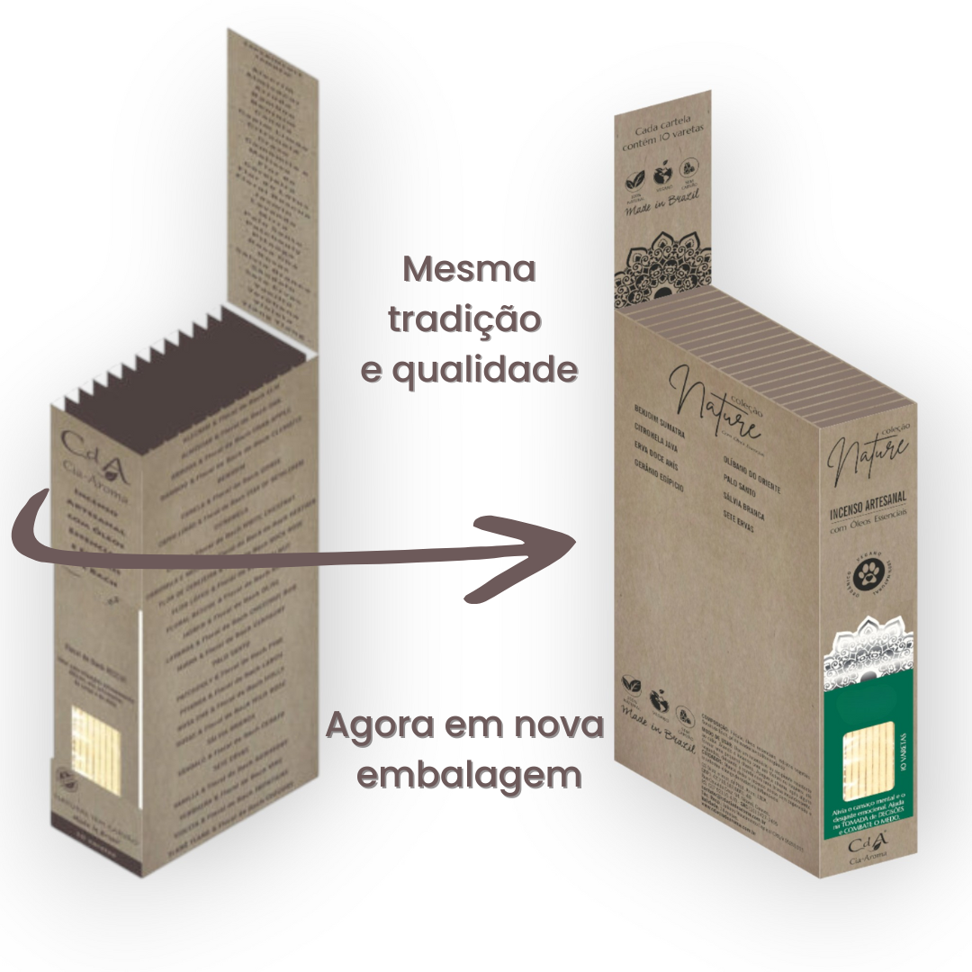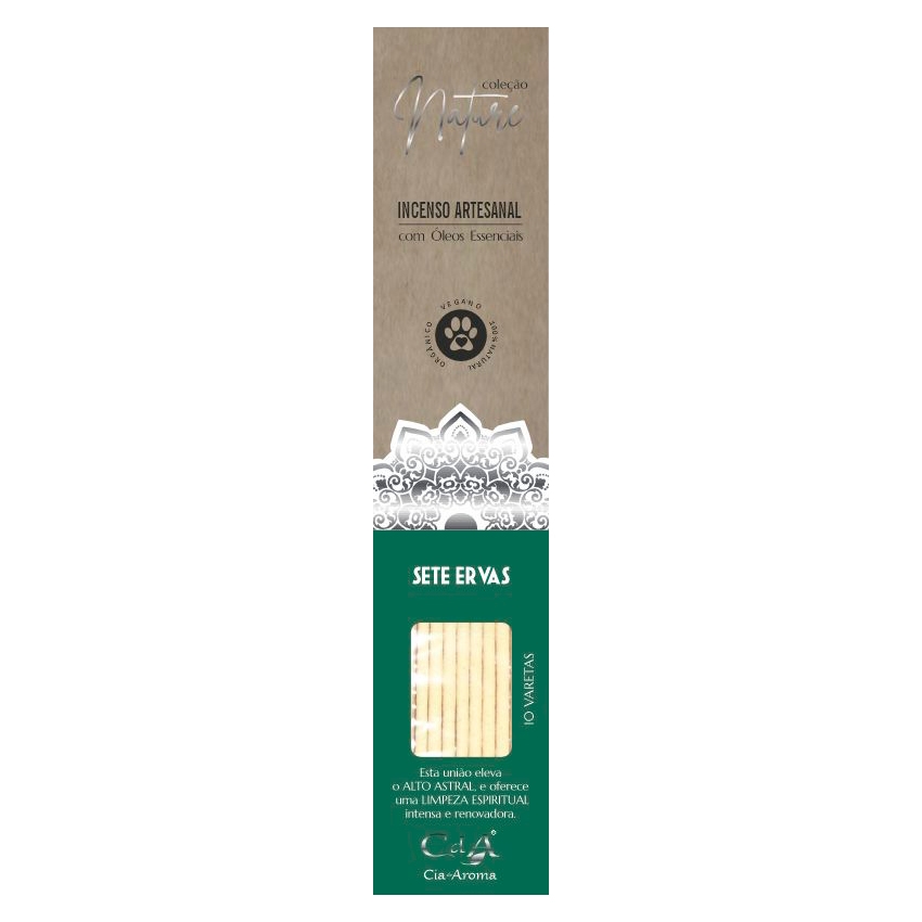 Com óleo essencial de Sete Ervas. Sua união eleva o alto astral, e oferece uma limpeza espiritual intensa e renovadora.