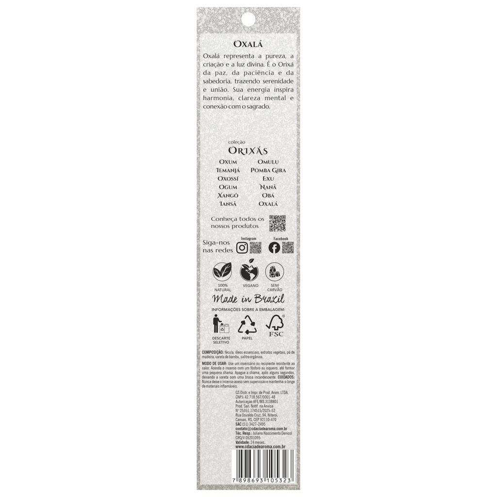 Composição: fécula, óleos essenciais, extratos vegetais, pó de madeira e vareta de bambu, salitre orgânico.