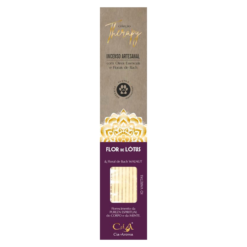 Produzidos artesanalmente, natural, sem adição de carvão. Com óleo essencial de Flor de Lotus e floral BACH. Florescimento da pureza espiritual do corpo e da mente. Contém: 10 varetas.