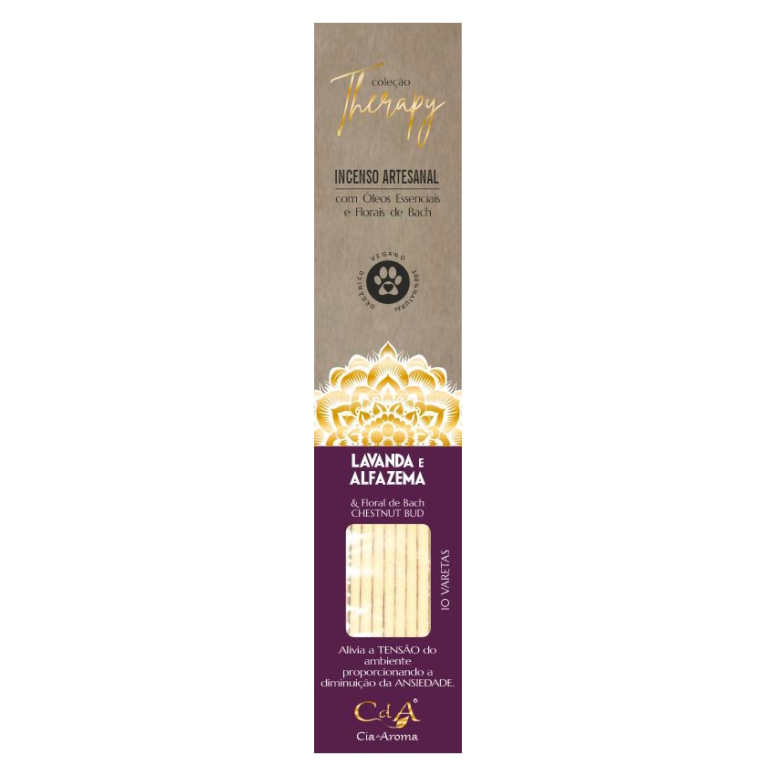 Produzidos artesanalmente, natural, sem adição de carvão. Com óleo essencial de Lavanda e Alfazema e floral BACH. Alivia a tensão do ambiente proporcionando a diminuição da ansiedade. Contém: 10 varetas.
