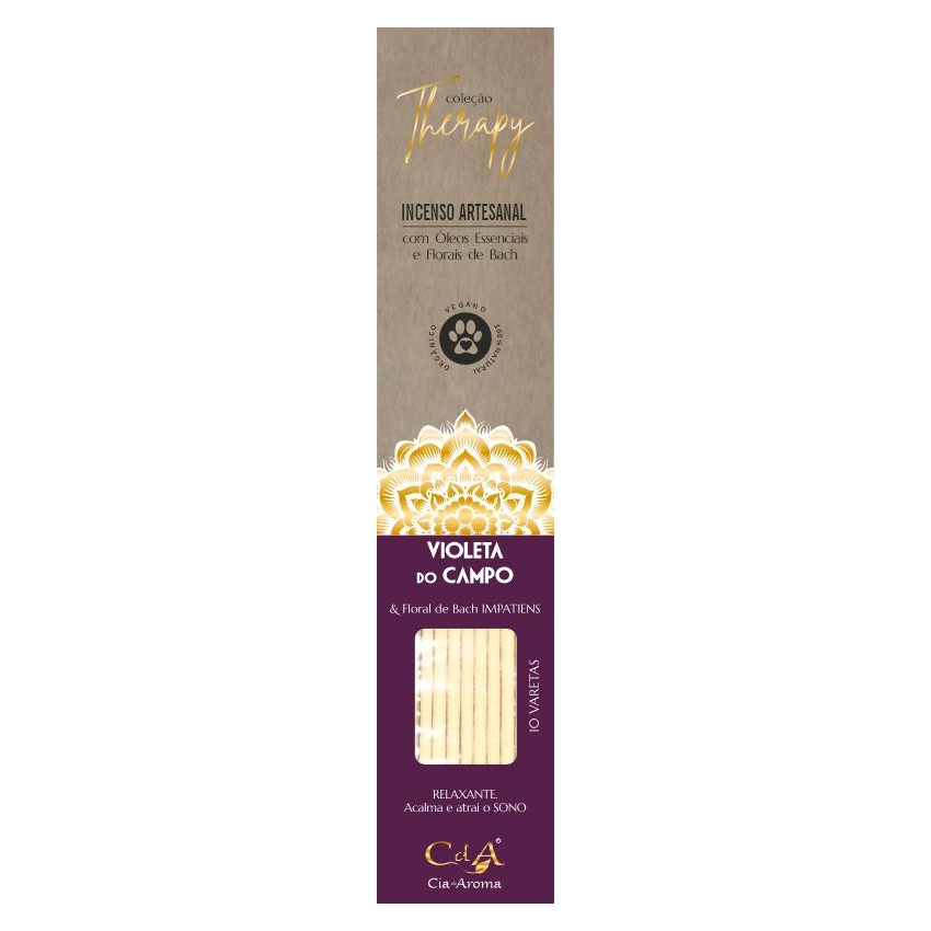 Produzidos artesanalmente, natural, sem adição de carvão. Com óleo essencial de Violeta do Campo e floral BACH. Relaxante. Acalma e atrai o sono. Contém: 10 varetas.
